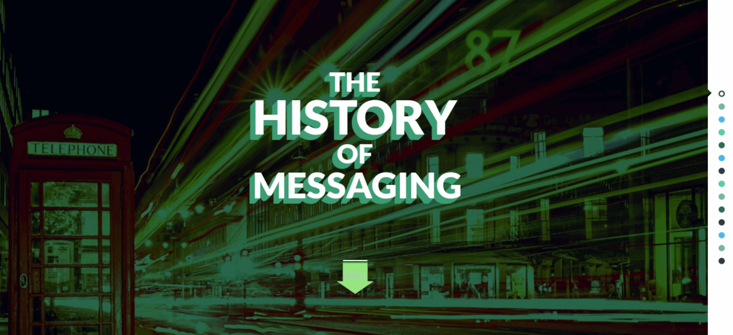 Scrolling landing pages or scrolling infographic formats are visual storytelling at its best. They encourage attention and provide an immersive experience, literally carrying an audience through the journey of a topic. These formats cater particularly well to historical timeline campaigns. In the example below, we’re venturing through the history of messaging, from carrier pigeons and telegrams, all the way to instant messaging and modern-day texting.