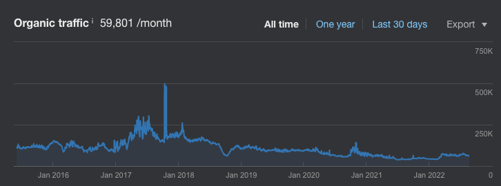 Slowly but surely we’ve seen this section gradually fall off in terms of organic traffic in favor of more relevant topical authorities.
