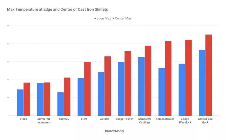 A site that does this really well is Serious Eats. In their “Best Cast Iron Skillet” article, they heated up all of their products and collected custom data around the temperature at the edges and the middle of the skillet. They then graphed it all out to give them a piece of imagery that nobody else on the SERP has.