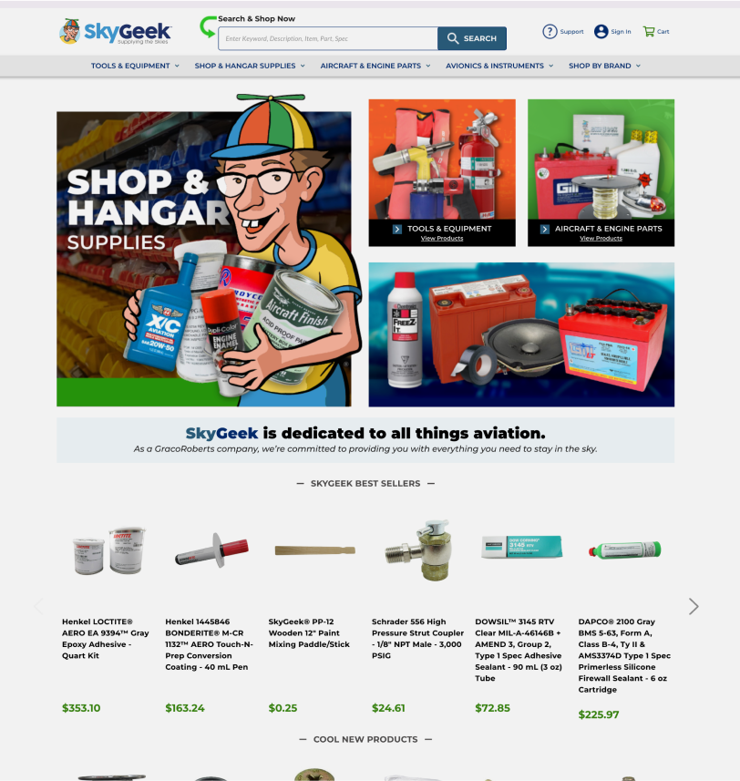 Long-term Go Fish client, SkyGeek, has been providing the aviation industry with quality aerospace products and avionics equipment for over 40 years. SkyGeek supplies an array of business types, including aviation, mechanical, military institutions, government agencies, and more.