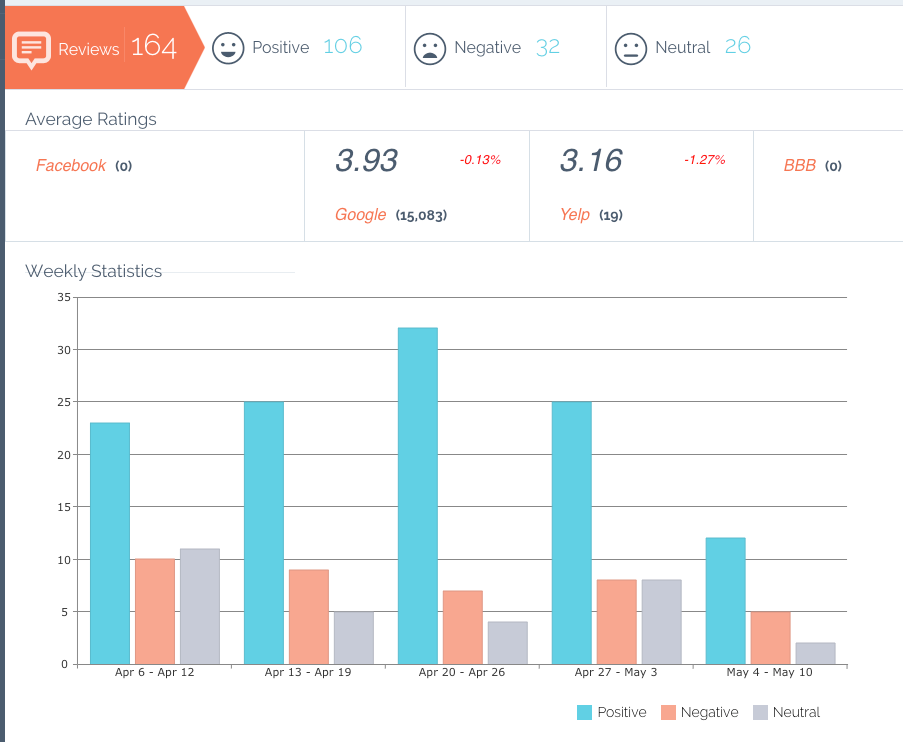 Our goal is to help you eliminate negative reviews, encourage positive ones and improve your overall star rating. You can also use our Yelp Improvement Calculator to see how many reviews you need to adjust your star rating.